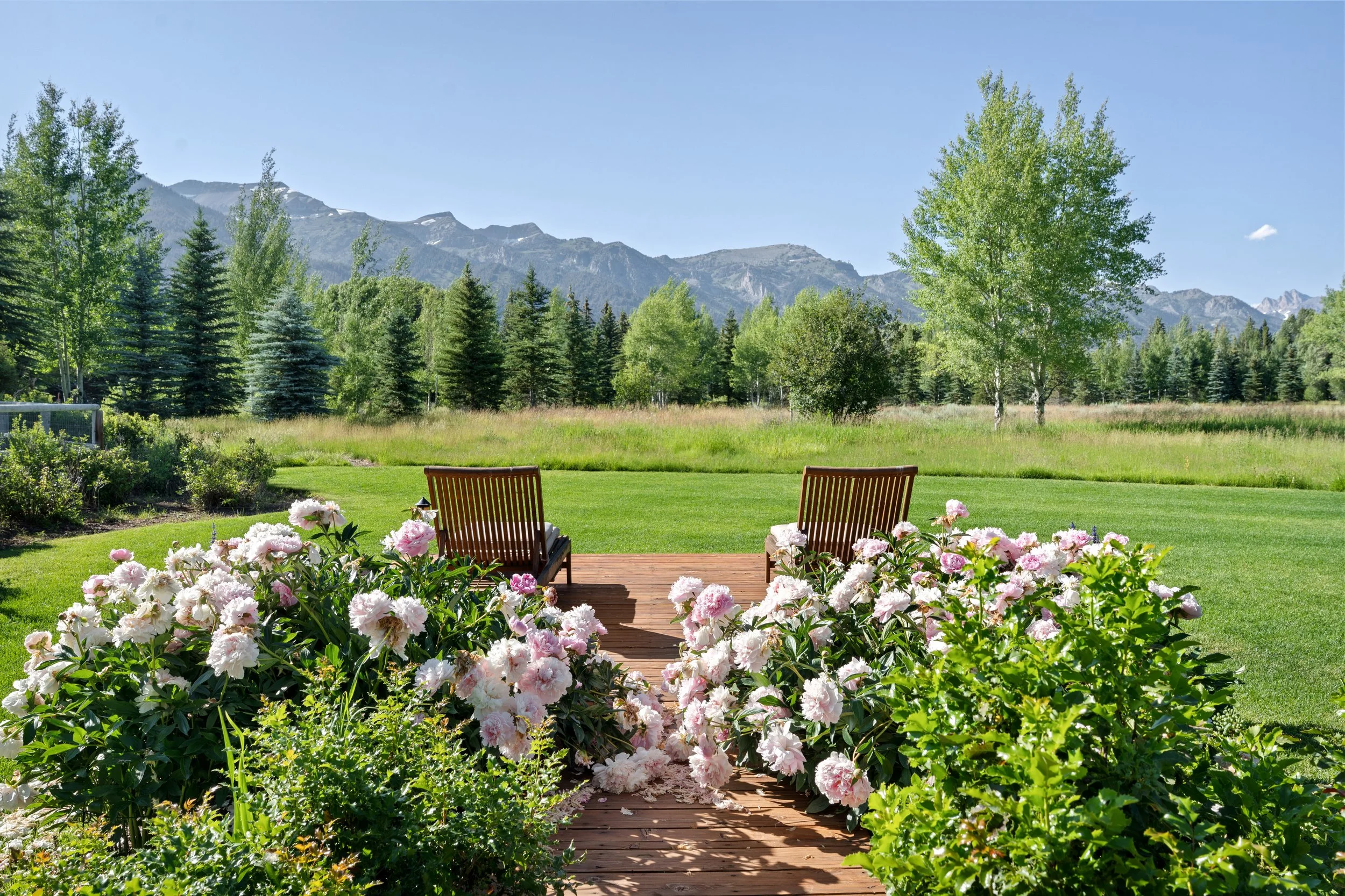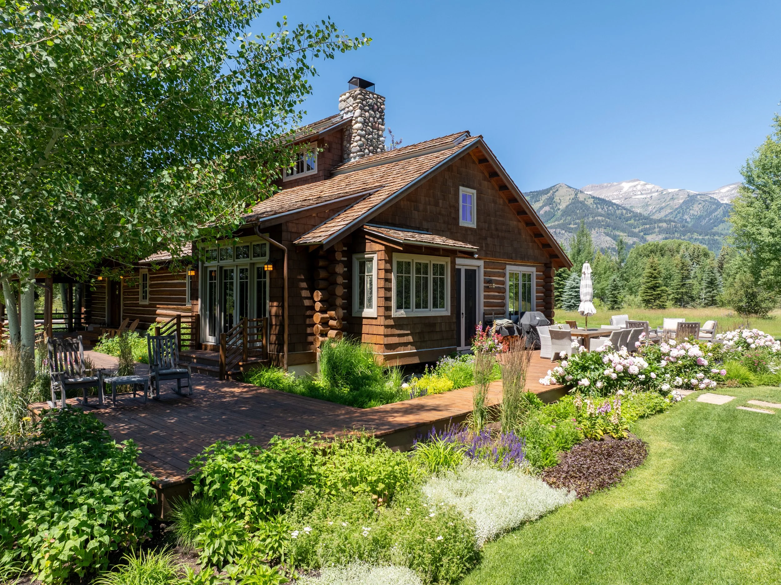 Outside, the meticulously landscaped grounds are a sanctuary unto themselves. Enjoy colorful flower beds, a lush, manicured lawn, a custom greenhouse, expansive deck space, and a hot tub with show-stopping views of the Tetons. This is outdoor living at its finest.